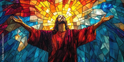 © Alexandr, Fototapeta premium Man in front of stained glass window