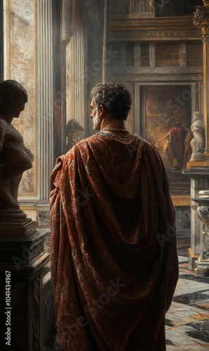 Naklejka premium Man in robe, ancient setting, ornate decor.