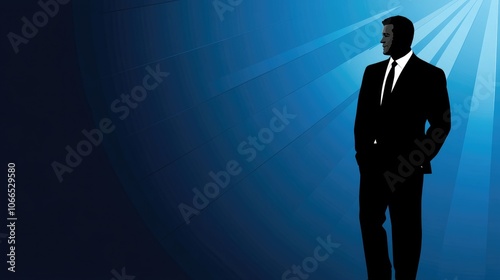 Fototapeta premium Man in Suit Standing Against Blue Background, Looking Forward with Hope and...