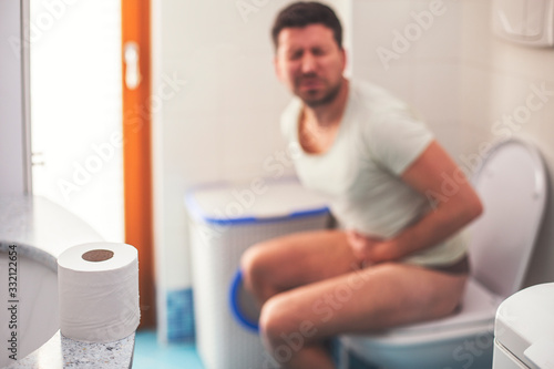 Fototapeta premium Man in the bathroom suffering from stomach pain