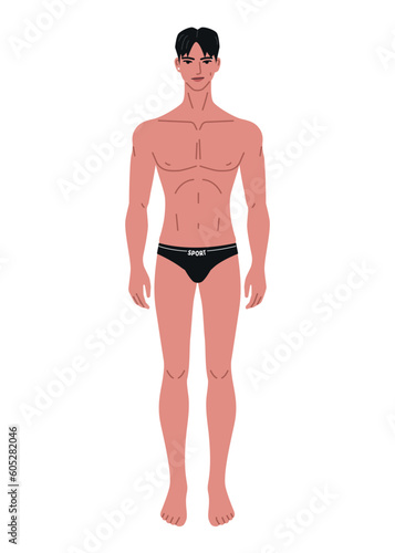 © daqota, Fototapeta premium Man in underwear body front view , illustration on white background. Isolated clip art of male model.