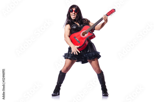 Obraz premium Man in woman clothing with guitar