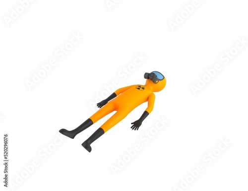 Obraz premium Man in Yellow Hazmat Suit character lying on floor in 3d rendering.