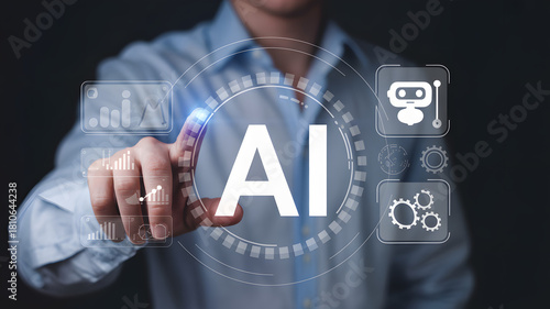 © Photo Gallery, Naklejka premium Man interacting with ai future