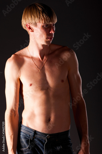 © Sergey Peterman, Fototapeta premium man is standing on black background