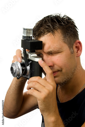 © Sandra van der Steen, Fototapeta premium Man is taking photo with old fashioned camera