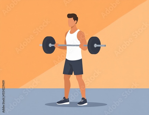 © Trukune, Obraz premium Man Lifting Barbell Workout Illustration