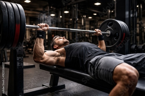 Fototapeta premium Man Lifting Weights in Modern Gym