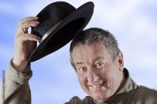 © Edler von Rabenstein, Fototapeta premium Man lifts hat in greeting