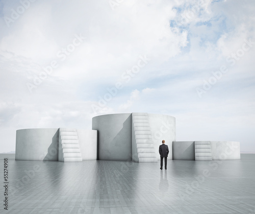Obraz premium man looking at empty podium with stairs