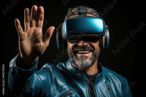 Fototapeta premium man looking at glasses of virtual reality. Future technology concept