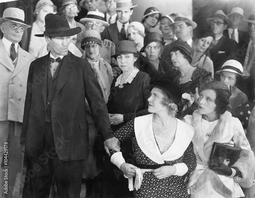 © everettovrk, Fototapeta premium Man looking at his wife in anger while a group of people is watching