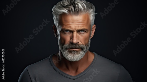 © The, Fototapeta premium Man Looking Serious on Pastel Gray Background