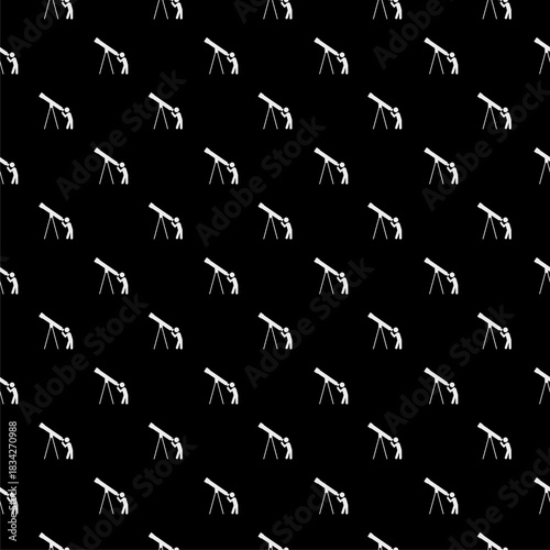 © sljubisa, Fototapeta premium Man Looking Through Telescope seamless pattern isolated on black background
