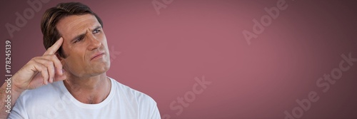 © vectorfusionart, Obraz premium Man looking up with pink background