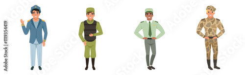 © topvectors, Naklejka premium Man Military Uniform and Army Officer Vector Set