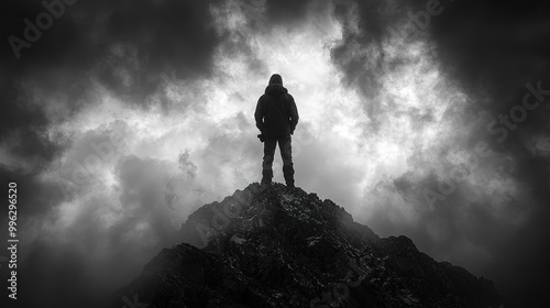 © SeiryuFujin, Obraz premium Man on Mountaintop