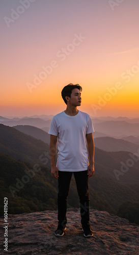 © Lazada, Fototapeta premium Man on mountaintop at sunrise