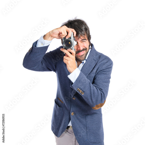 Fototapeta premium Man photographing over white background