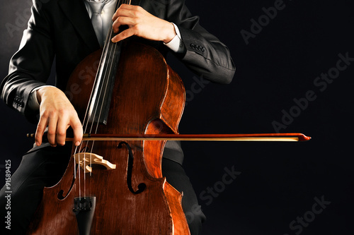 © Africa Studio, Obraz premium Man playing on cello on dark background