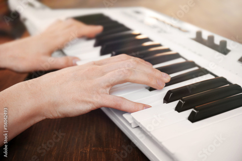 © Africa Studio, Fototapeta premium Man playing on synthesizer closeup