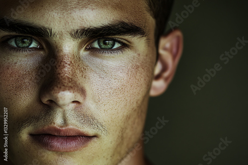 © 月 明, Obraz premium Man portrait close up, handsome male portrait close up