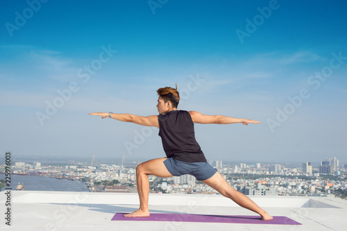 Fototapeta premium Man practicing advanced yoga. A series of yoga poses. lifestyle concept.