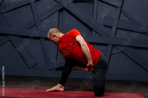 © glazunoff, Fototapeta premium Man practicing advanced yoga against a urban background