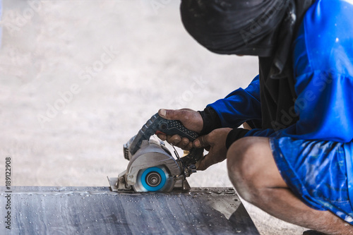 Fototapeta premium Man professional worker cutting tile