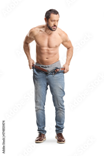 © Ljupco Smokovski, Fototapeta premium Man putting on a pair of jeans