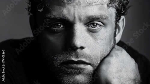 © JoZe, Fototapeta premium Man rests fist on his cheek thinking