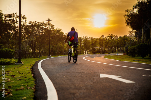 © Oranuch, Fototapeta premium Man ride on bike on the road.