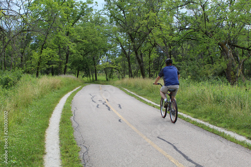 © John, Fototapeta premium Man riding a bike on the North Branch Trail at Miami Woods in Morton Grove, Illinois