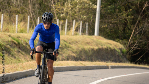 Obraz premium Man riding bicycle on a road outdoors