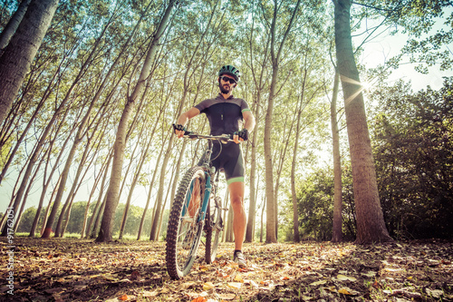 © Giorgio Pulcini, Obraz premium Man riding on a dirty road on a mountain bike