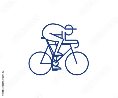 Fototapeta premium Man riding on his bicycle, bike. Cyclist, sports cycling. Icon, symbol blue geometric lines vector illustration isolated on white background.
