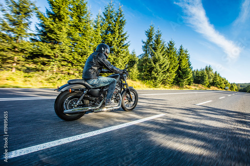 © Lukas Gojda, Fototapeta premium Man riding the motorcycle. On the road!