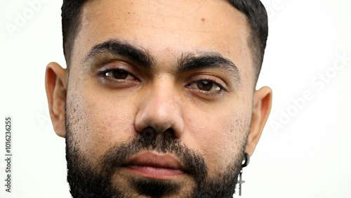 © Katsiaryna, Fototapeta premium Man's face, close-up, on a white background