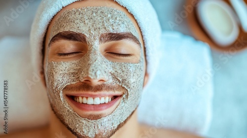 Fototapeta premium Man's Face Scrub Mask Treatment, skincare routine, facial