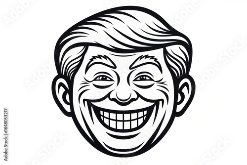 © MtRawnok, Fototapeta premium Man s face with wide grin and wrinkles isolated on white background