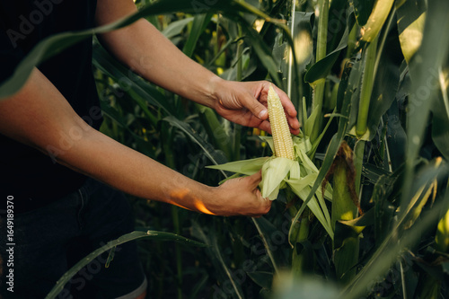 © standret, Obraz premium Man's hands are holding corn on the agricultural field