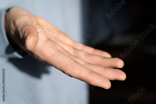 © Blaszko, Fototapeta premium Man's hands, help gesture, open attitude