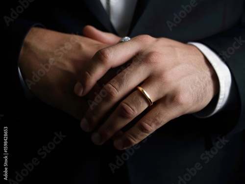 © Khan shaheb, Obraz premium Man s hands wearing a gold wedding ring
