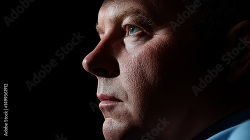 Obraz premium Man's Profile, Dramatic Lighting, Intense Gaze