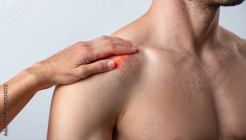 © ศิวาพร ทูปคันโธ, Fototapeta premium Man's shoulder with a painful inflamed area being examined by a hand Medical examination of a skin condition