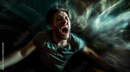 © RISHAD, Fototapeta premium Man screaming in dynamic blur.