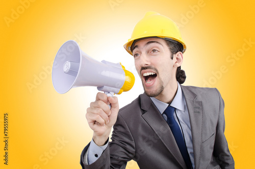 Fototapeta premium Man shouting and yelling with loudspeaker