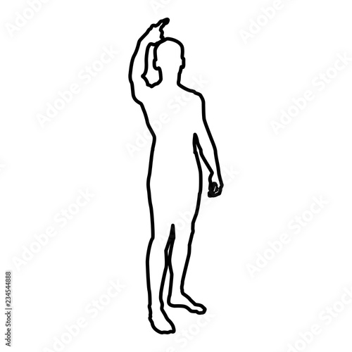Fototapeta premium Man shows his finger up concept silhouette icon black color illustration outline