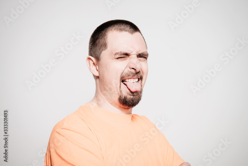 Fototapeta premium Man shows tongue