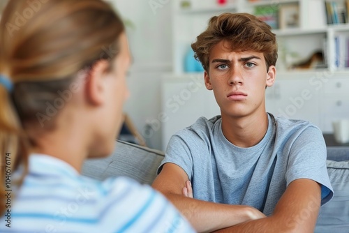 © Vera, Obraz premium Man sitting on the couch observing an anxious woman